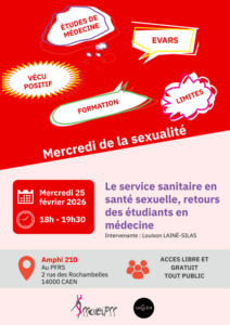 le 25 février à 18H au PFRS amphi 210: Le service sanitaire en santé sexuelle, retours des étudiants en médecine par Louison Lainé-Silas.