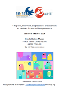 Vous êtes concernés, parents ou professionnels, par l’exigence du repérage et des soins précoces, par la clinique des troubles du neuro-développement : nous vous attendons nombreux !