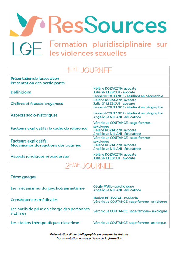 Deux journées de sensibilisation, d’analyse et de croisement des pratiques autour des violences sexuelles animées par des professionnels