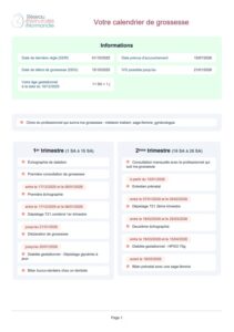 Un Calendrier de grossesse/Gestogramme est également disponible. Il permet de calculer le terme de la grossesse et ainsi vous guider dans les consultations de suivi.